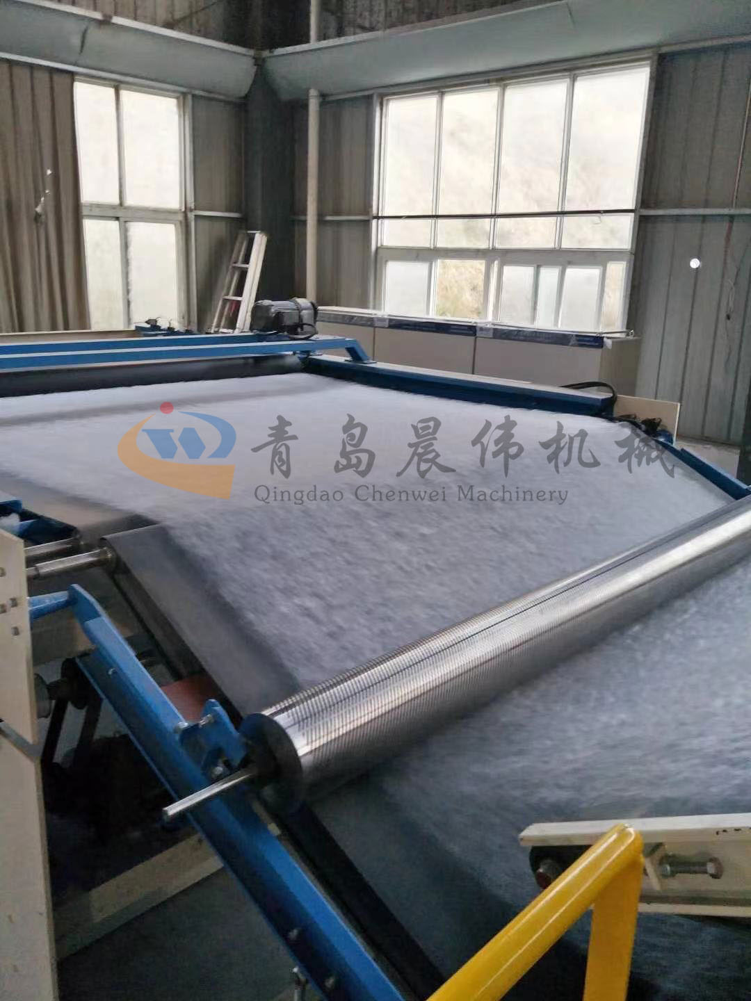 5. CWPW-鋪網(wǎng)機(jī):用于將梳理纖網(wǎng)通過移動小車交叉折疊為所需幅寬和定量的多層纖網(wǎng),以供后道工序使用。鋪網(wǎng)輥采用特殊結(jié)構(gòu),加裝壓網(wǎng)輥和導(dǎo)流板,不飄網(wǎng)不起皺,五只大功率電機(jī)精確控制各部件的運(yùn)動,電動輸出簾高度調(diào)節(jié)裝置