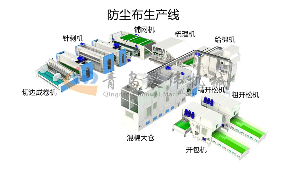 開包機-開松機-振動給棉機-梳理機-鋪網(wǎng)機-針刺機-切邊成卷機
